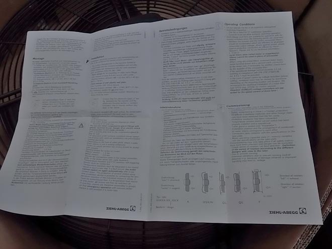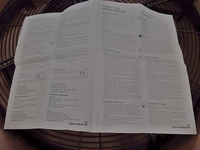 Description: Fan. Brand ZIEHL-ABEGG. Model 101633. 0,90kW. 4 blades. Diameter 600 mm.