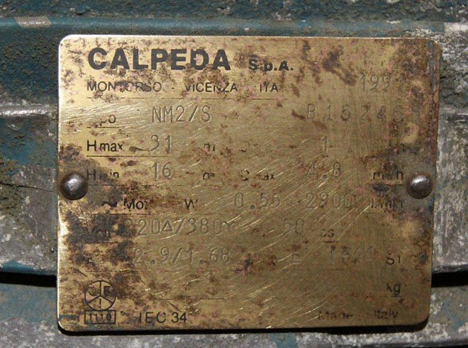 Description: Centrifugal pump self-priming. CALPEDA. NM2/5. 0,55kW. Including pressure control group.