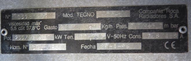 Description: Burner fuel 255/474 -- 830kW