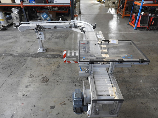Description: "L" nylon flap conveyor belt, 90º curve