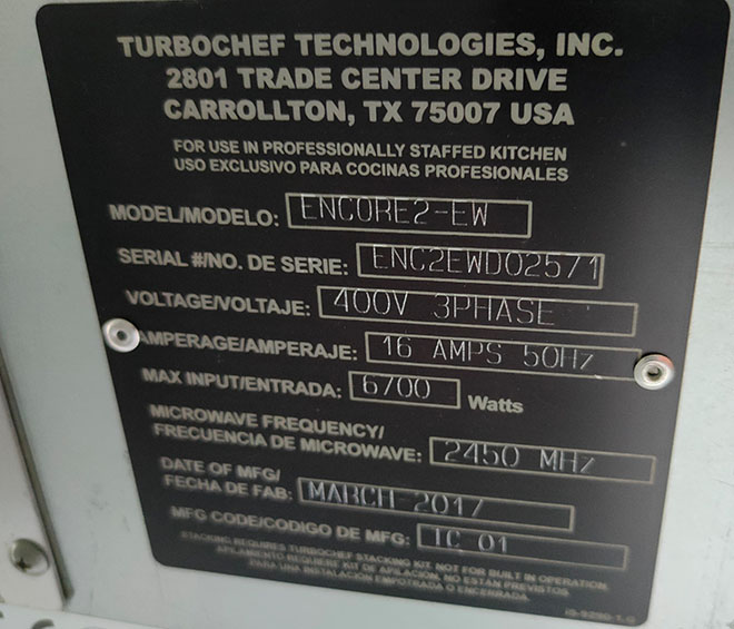 Brand: TURBOCHEF TECHNOLOGIES