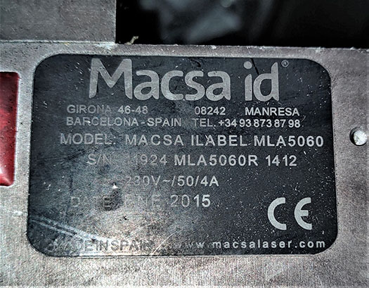 Type: MACSA ILABEL MLA5060 LASER SYSTEM F9000