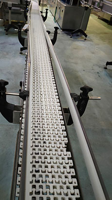 Description: Conveyor belt dimensions: 5300 x 150mm with a 90º curved end (L)