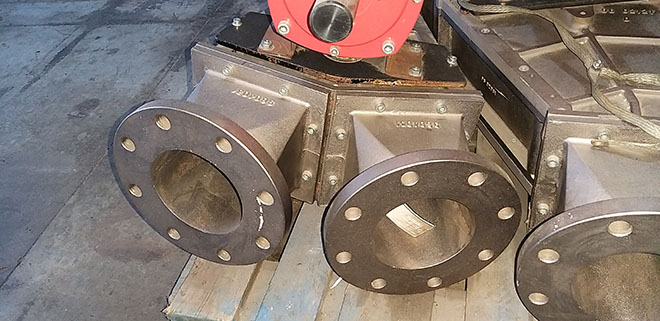Description: 4" 3-way bypass valve, for solid bulk product.