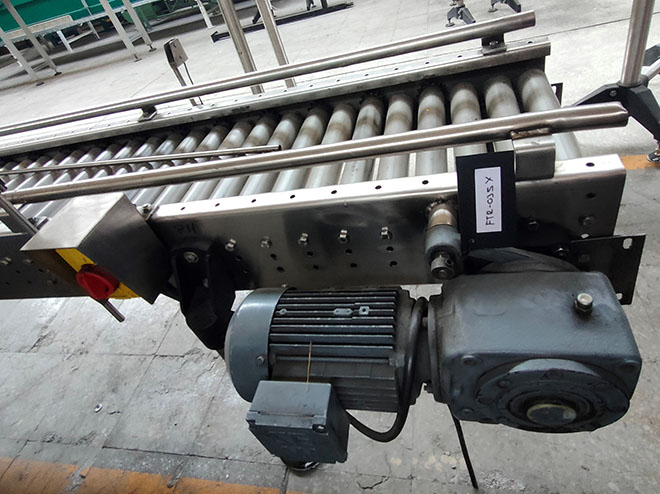 Description: Motorized roller conveyor, mounted on INOX chassis