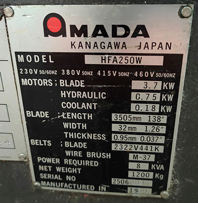 Description: Automatic vertical cutting band saw.