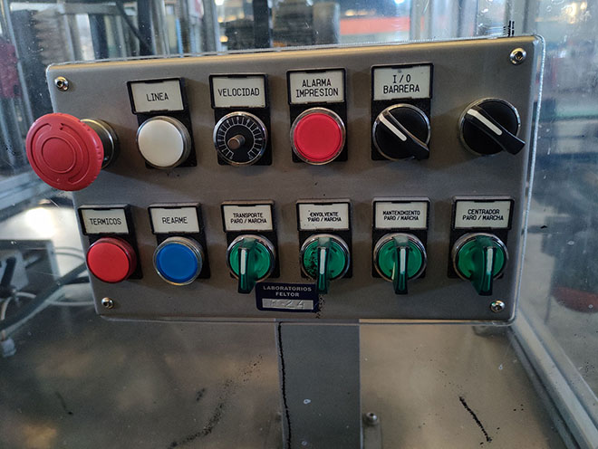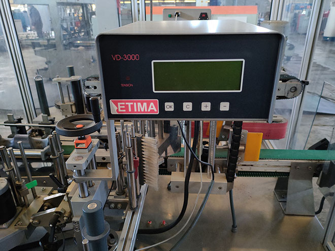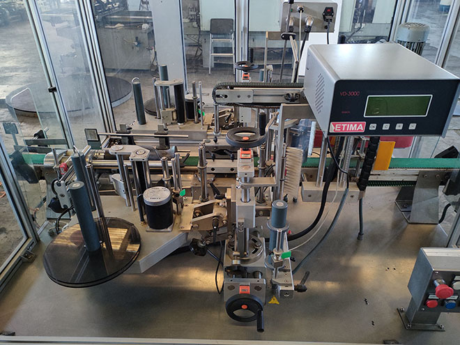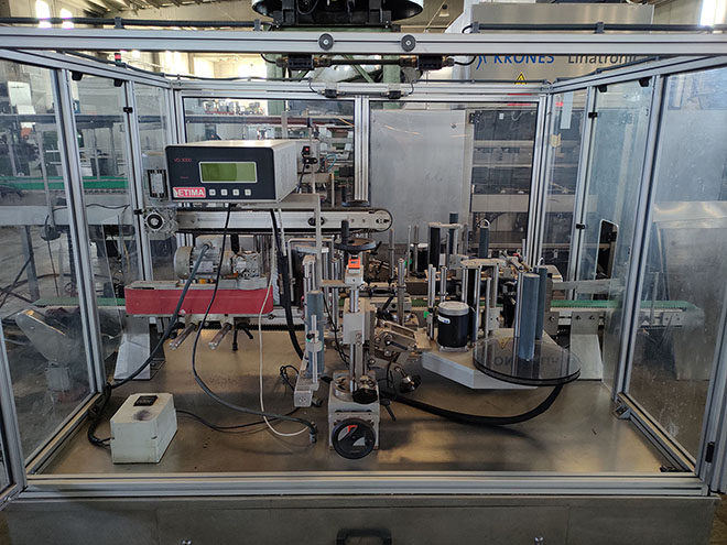 Description: Linear double head labeller, prepared for the placement of self-adhesive labels on multiform containers (Cylindrical, square, rectangular, oval, conical, etc...)