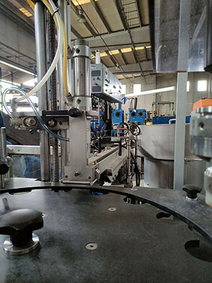 Intermediate station for the placement of plugs and stoppers by means of vibratory feeder VIBRANT model A-40 and vibratory path RHEIN-NADEL type ESK 2001