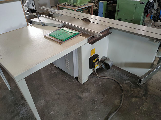 Description: Squaring machine or circular saw with tilting blade.