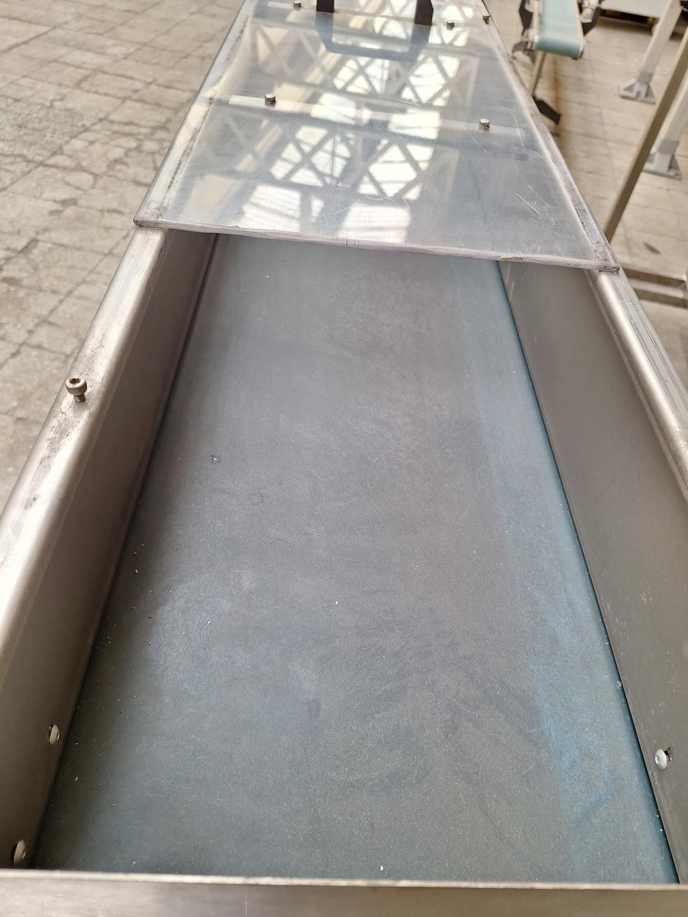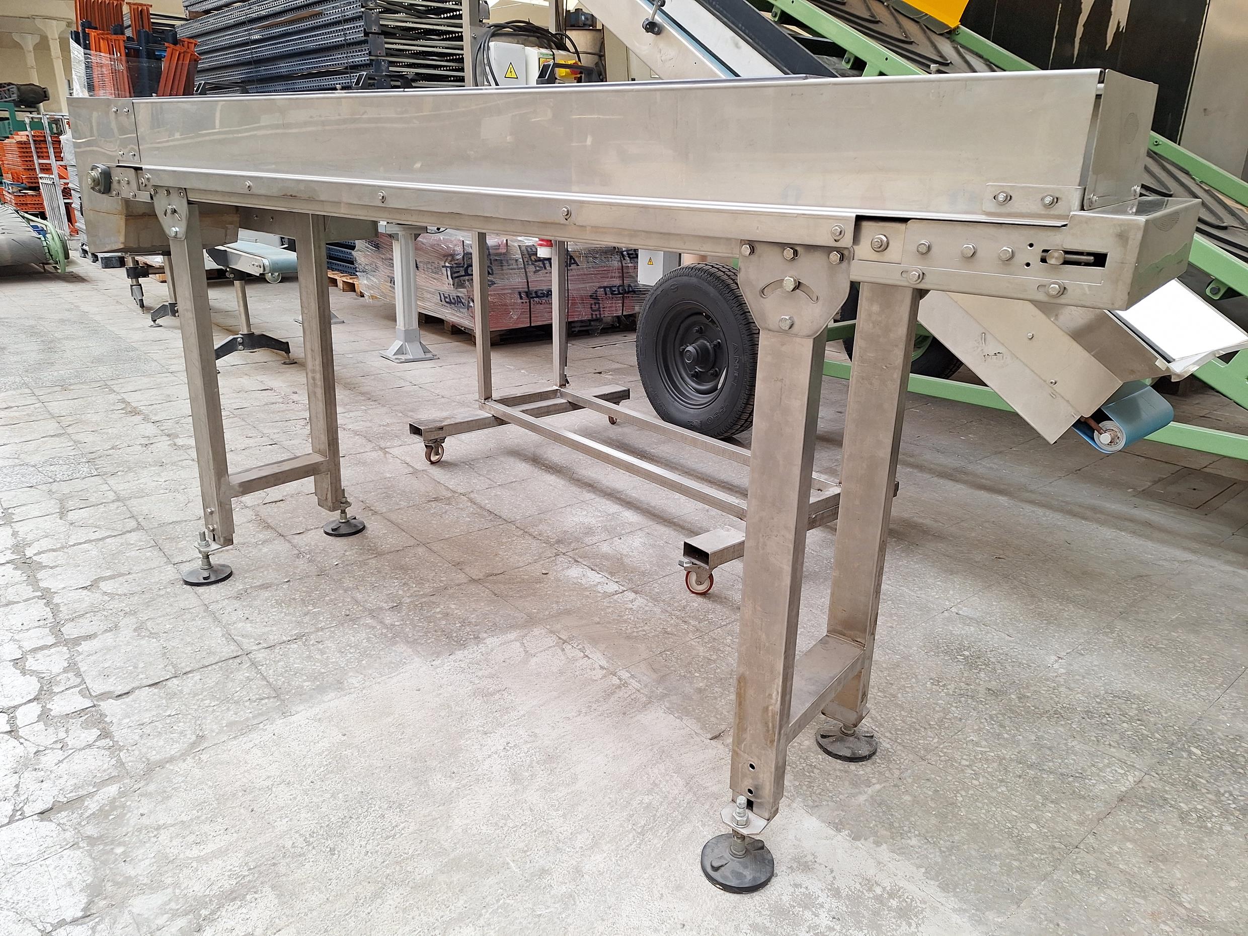 Description: Plastic band conveyor belt mounted on an INOX chassis, with useful dimensions:
