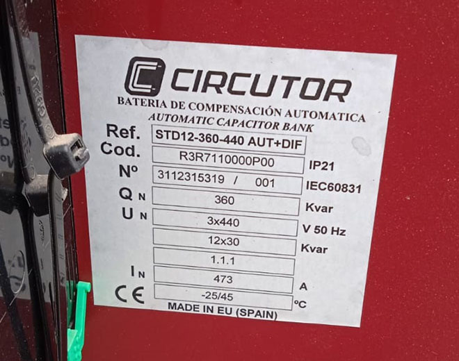 Description: Reactive automatic compensation battery, 360 KW, In 473A