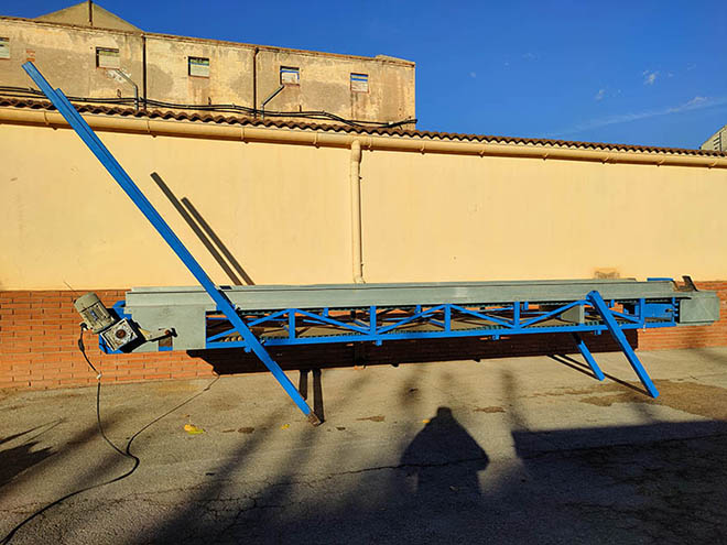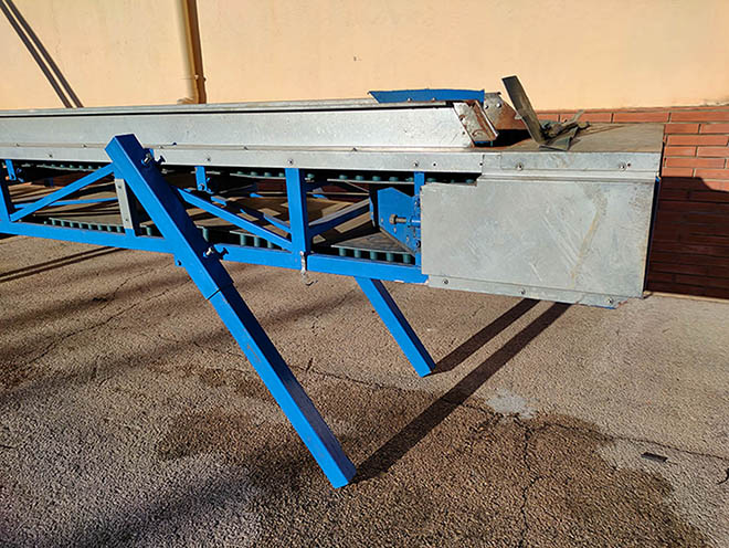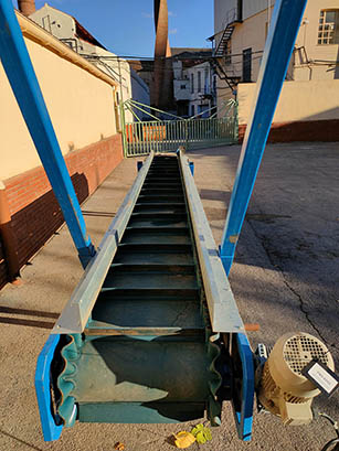 Description: Plastic belt conveyor with 70mm buckets.