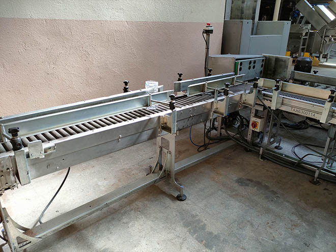 Input conveyor belts, output rollers and protections are included.
