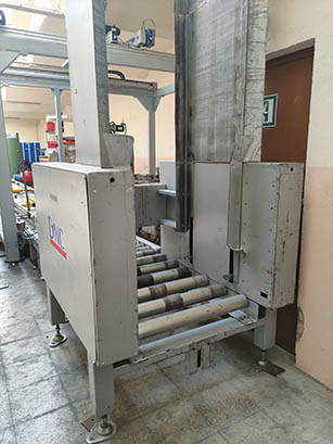 DNC LINE model pallet wrapping machine with motorized rollers, with a production capacity of up to 60 pallets/h.