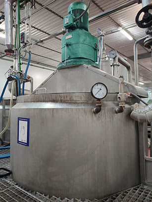 Description: Mixing tank, jacketed. Made of STAINLESS steel.