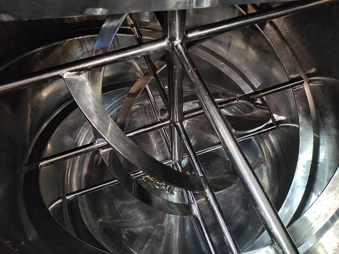 It has a vertical tangential agitator, for products with high viscosity.