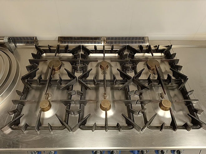 Description: 6-burner gas stove (6kW and 10kW), on a large 12kW gas oven