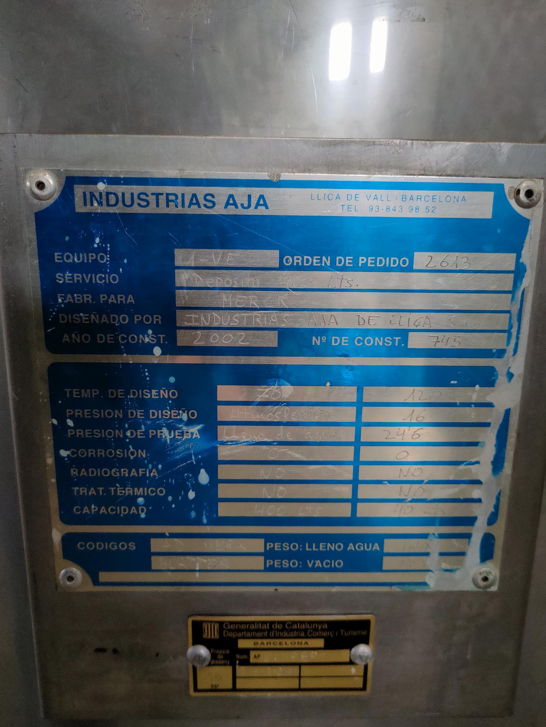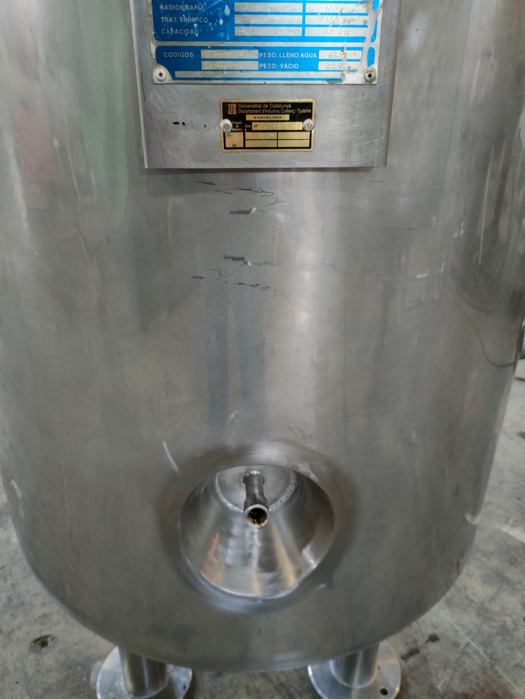 Description: Vertical tank, with 400 lts capacity agitator, heat insulated and with half-round heating/cooling.