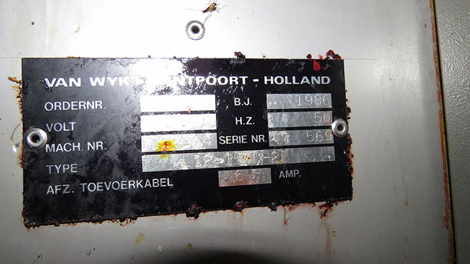 Description: 1 VAN WYK Filter for paste with elevation system Year 1986.