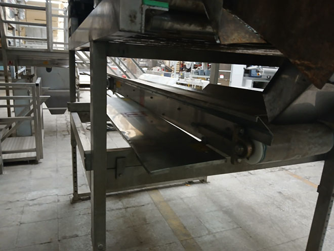 Description: Visual inspection station with motorized roller conveyors and output/reject conveyor