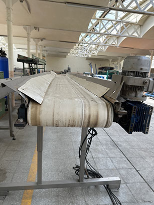 Description: Plastic conveyor belt with stainless steel chassis