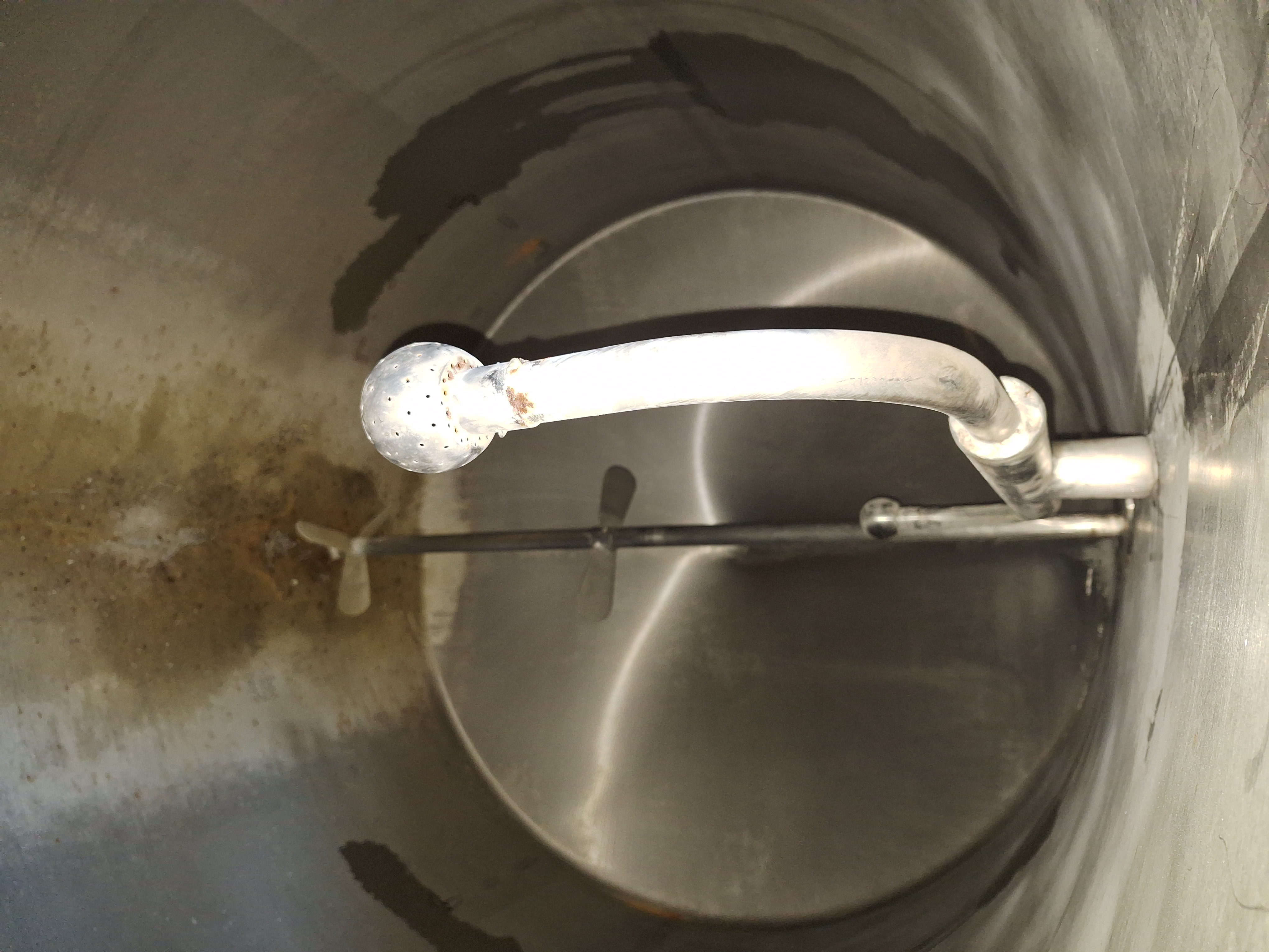 Mounted on legs, with agitator, top manhole, top inlet and bottom outlet, sampling valve, and CIP washing system.