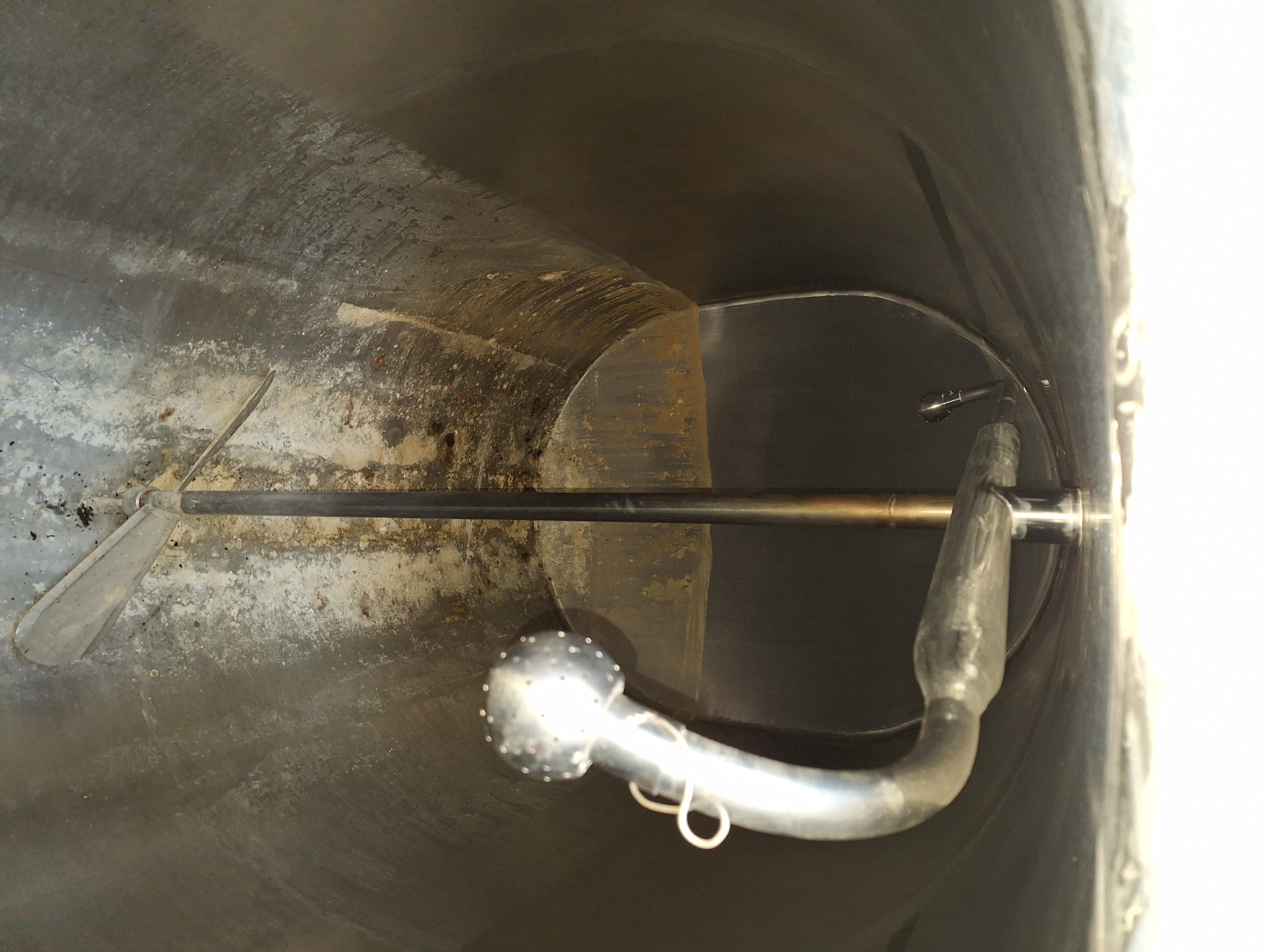 Mounted on legs, with agitator, top manhole, top inlet and bottom outlet, and CIP washing system.