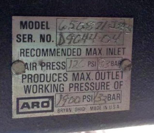 Description: Pump for ink; input pressure 120Psi/8,3bar; output pressure 1900Psi/133bar.