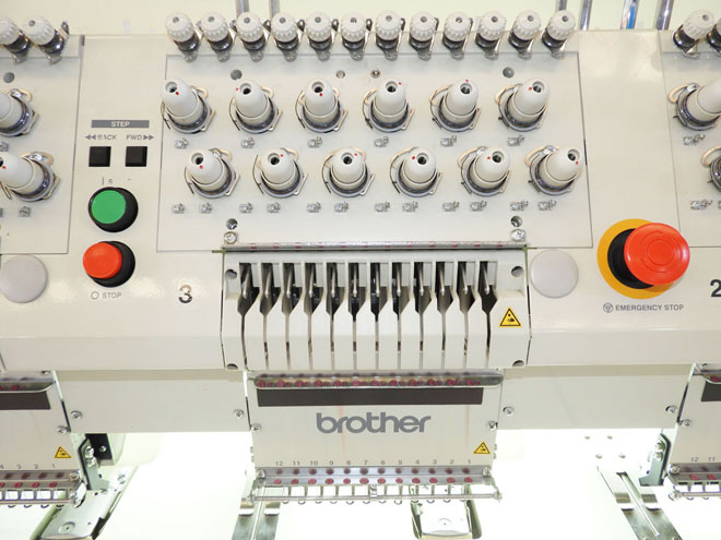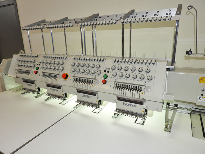 Description: Embroidery machine with 4 heads with 12 needles per head.