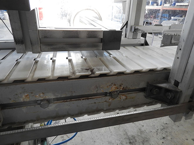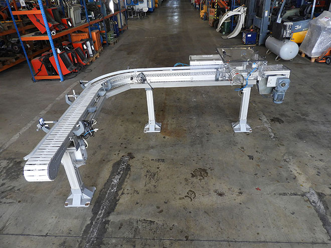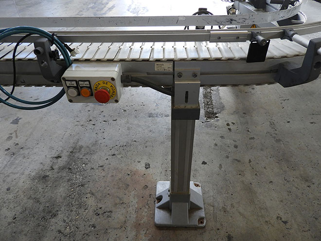 Description: "L" nylon flap conveyor belt, 90º curve