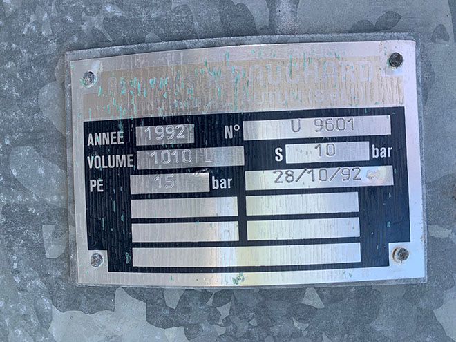 Description: Accumulation tank, capacity 1010L, PE 15bars, S 10 bar