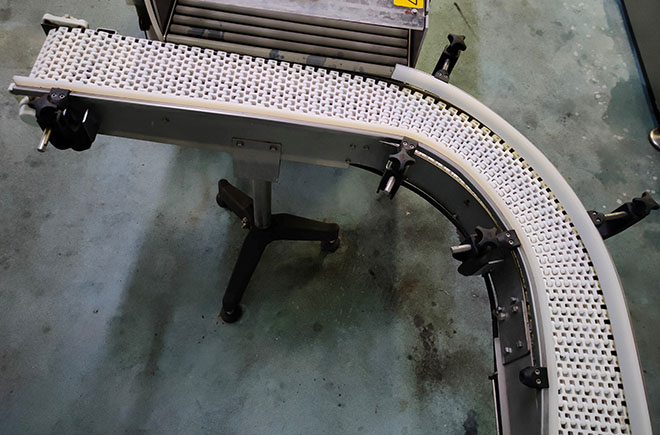 Description: Conveyor belt dimensions: 5300 x 150mm with a 90º curved end (L)