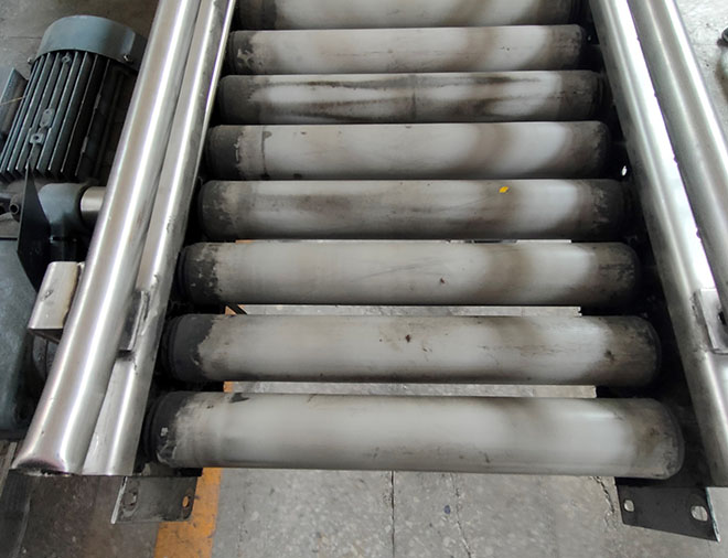Description: Motorized roller conveyor, mounted on INOX chassis