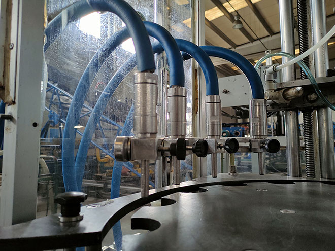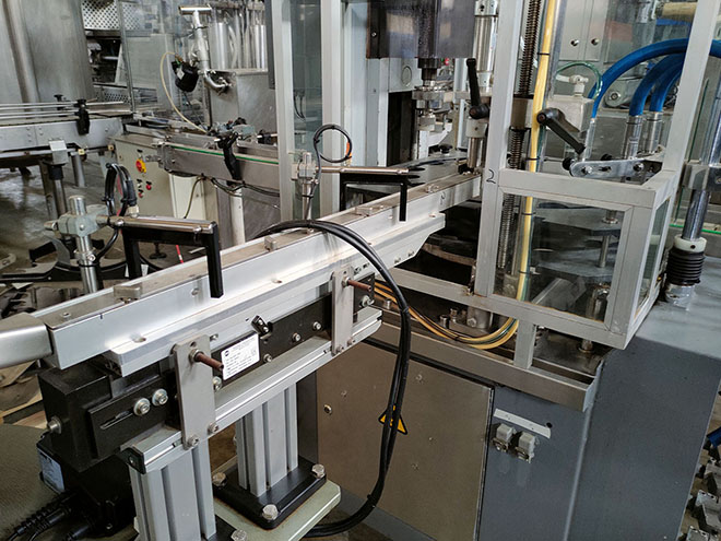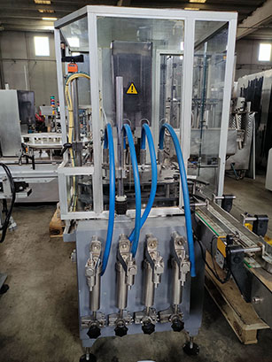 -. HISPAMEC filling and capping monoblock with intermittent operation, provided with 4 filling heads and three formats, 100, 250 and 1000ml, at a max. of 5000b/h (according to format).