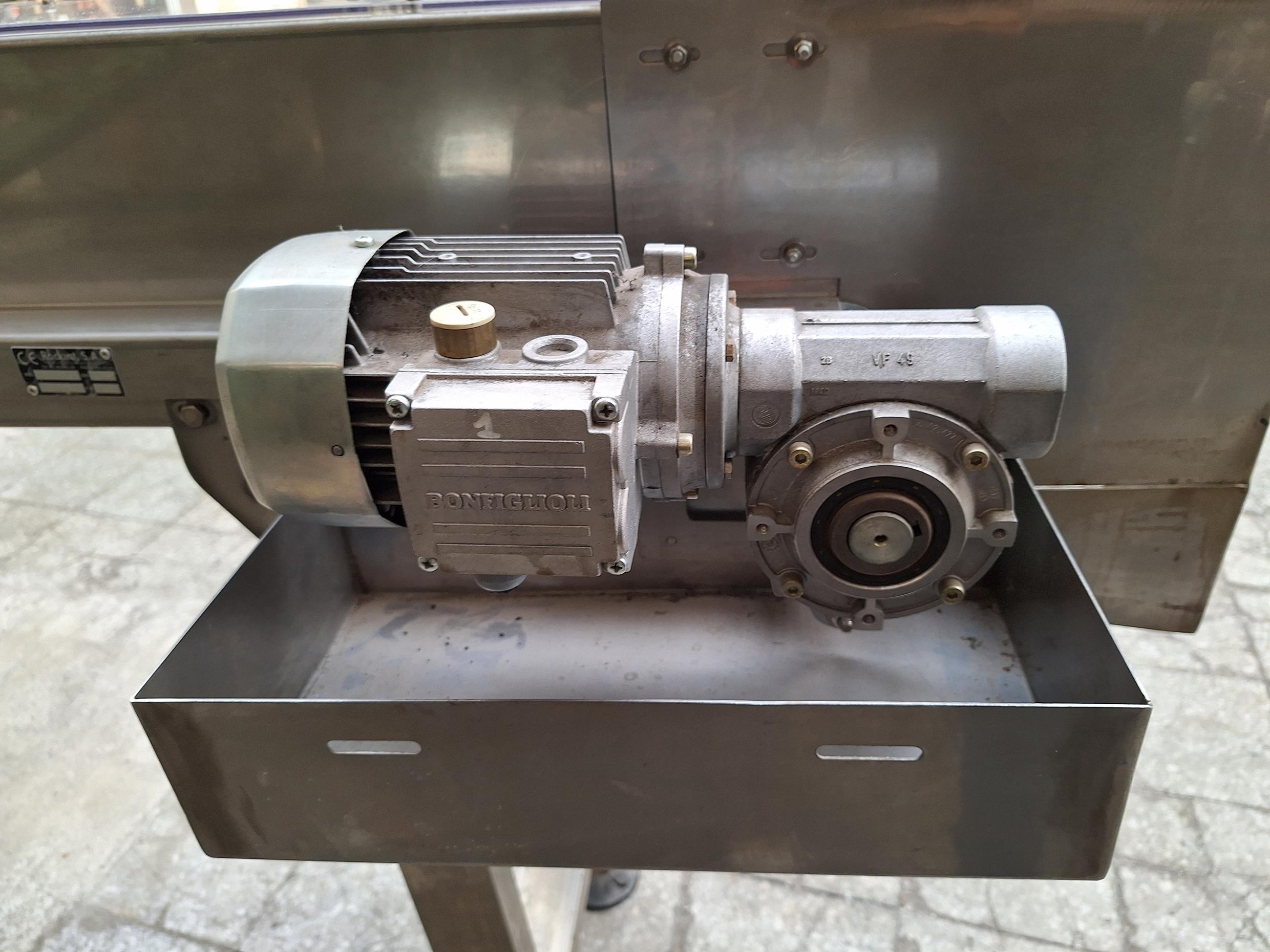Description: Plastic band conveyor belt mounted on an INOX chassis, with useful dimensions:
