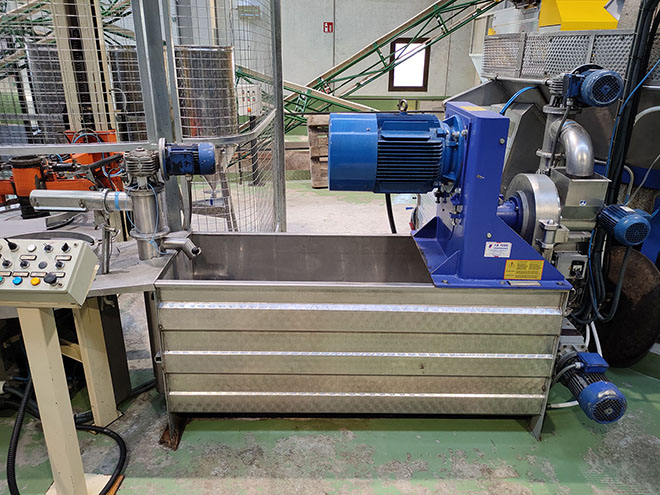 Description: Olive paste kneading mixing machine (cold) with perpetual elevator for output.