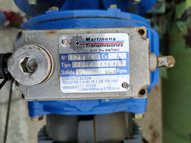 Motor power 0.75kW with MARTINENA brand manual speed variator 2.7-14.2