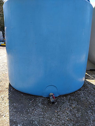 Description: Vertical tank, with flat bottom of 10m³ capacity, made of PE (polyethylene), with upper lid and lower outlet
