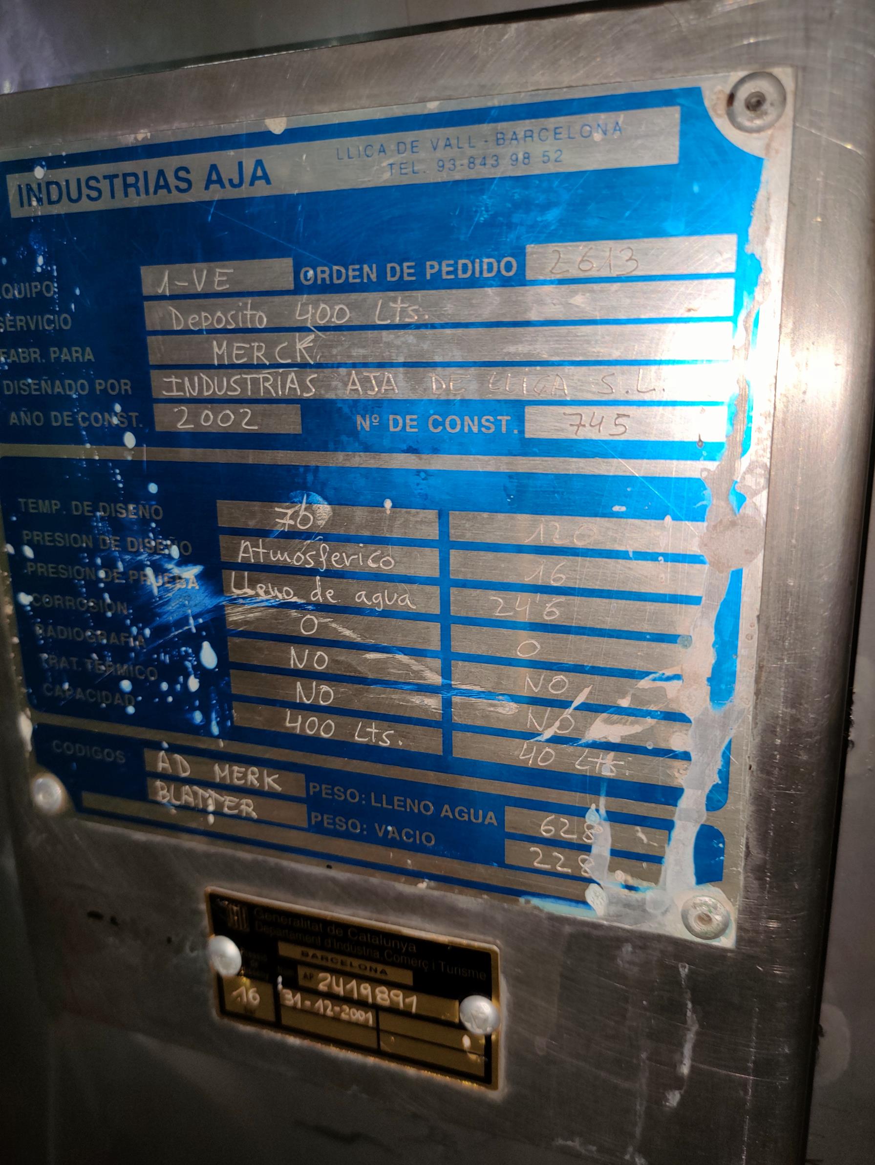 Description: Vertical tank, with 400 lts capacity agitator, heat insulated and with half-round heating/cooling.