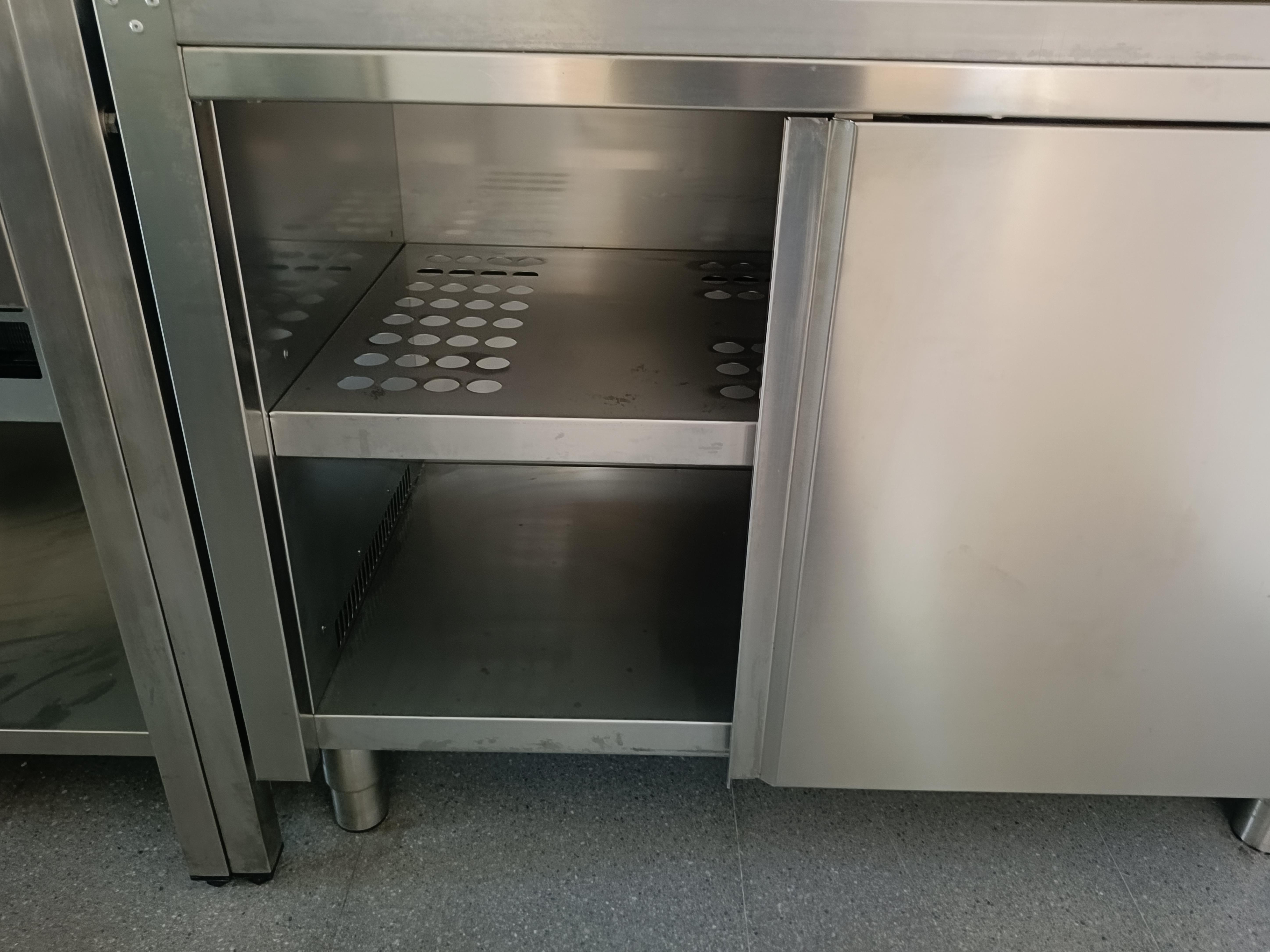 Description: Hot cupboard with two sliding doors for heating dishes before serving.