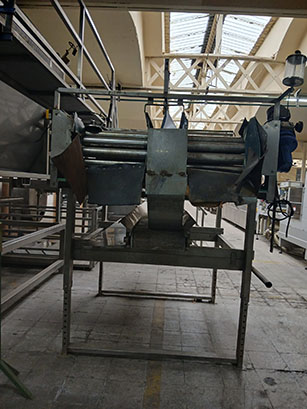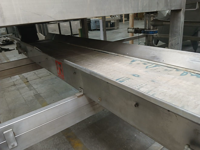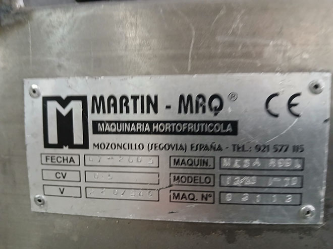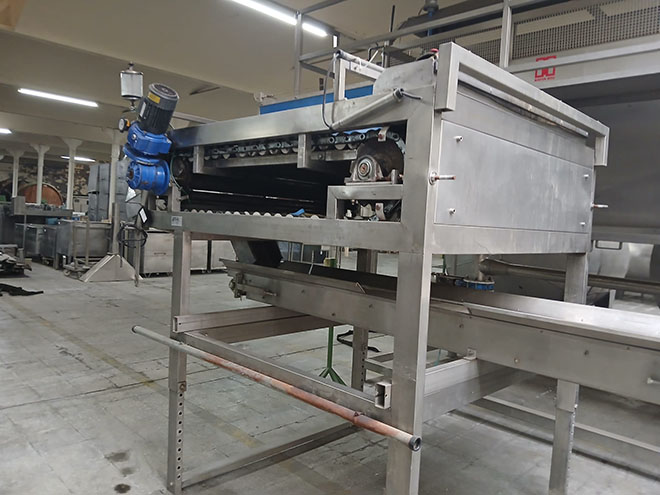 Description: Visual inspection station with motorized roller conveyors and output/reject conveyor