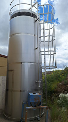 • Stainless steel silo for solids. Capacity 10,000 kg with pump