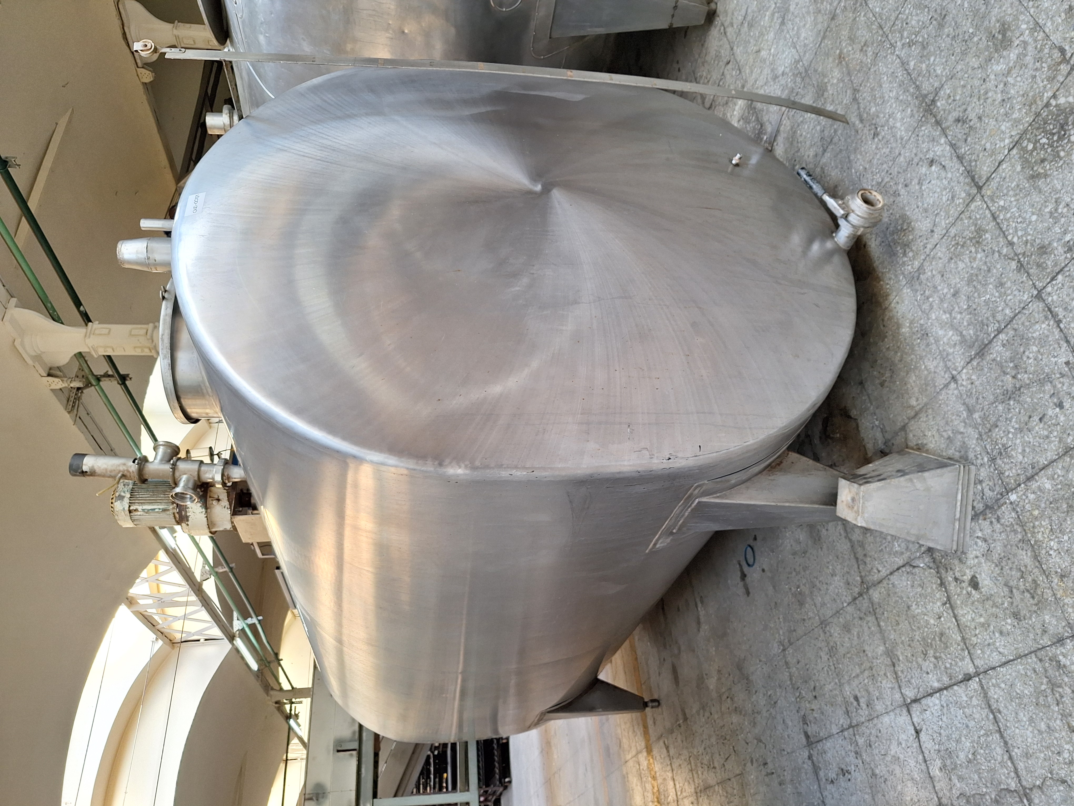 Mounted on legs, with agitator, top manhole, top inlet and bottom outlet, and CIP washing system.
